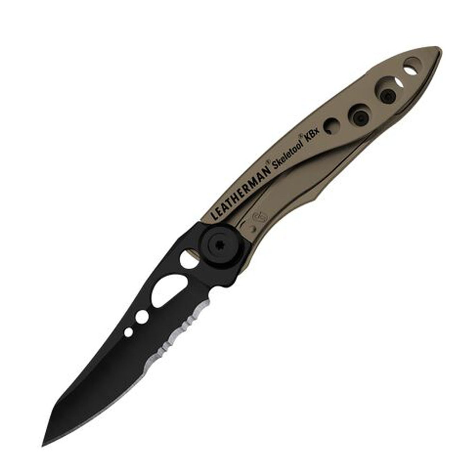 Leatherman KBX je novinkou mezi stylovými multitooly Leatherman řady Skeletool, kterou ocení všichni vyznavači kvalitních ultra lehkých zavíracích nožů. V 8,8 cm dlouhé těle multitoolu je ukryt univerzální nůž s kombinovanou čepelí z prémiové oceli 420HC a otvírák na láhve zabudovaný v rukojeti.