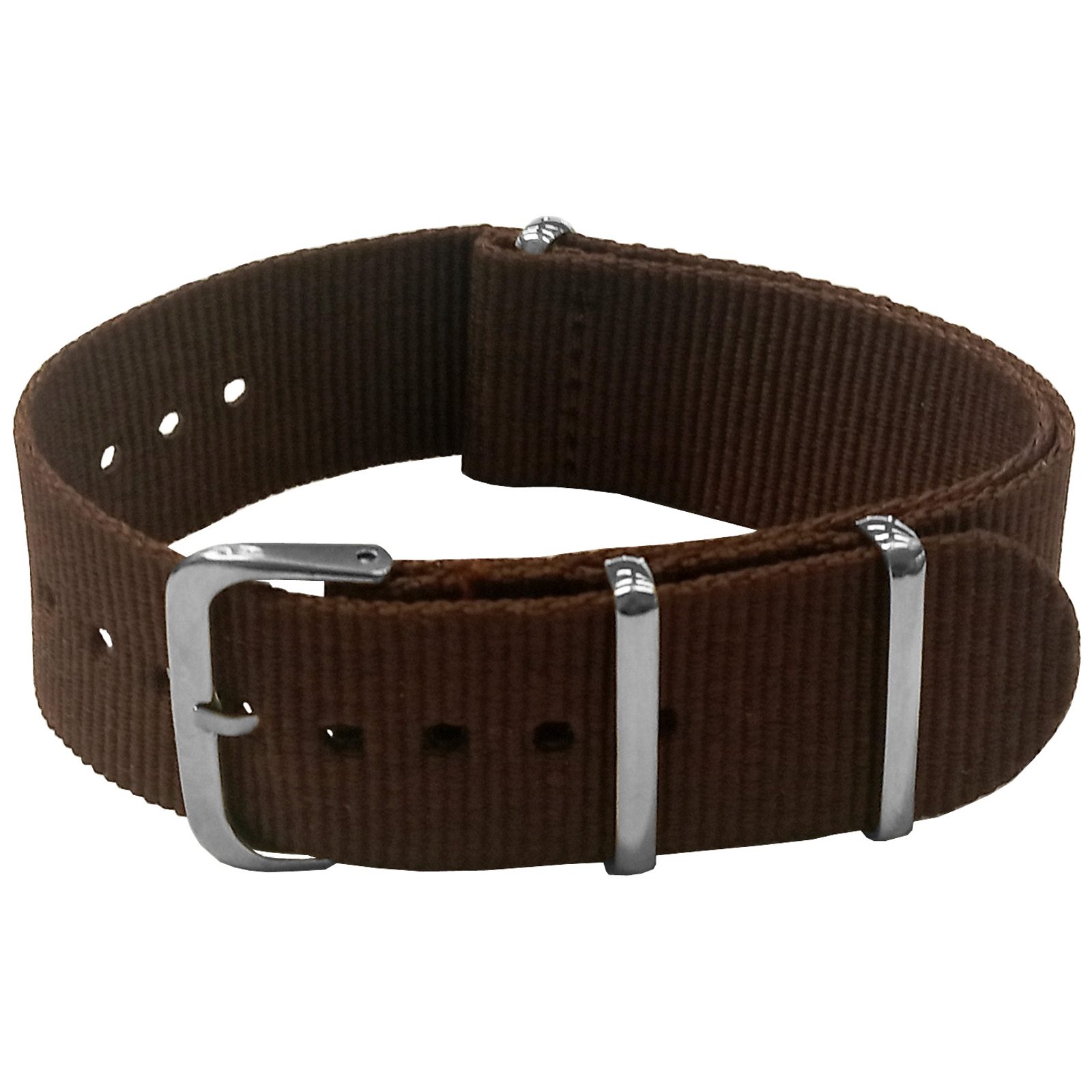 NATO řemínek v šířce 22 mm z NATO materiálu v hnědé barvě.