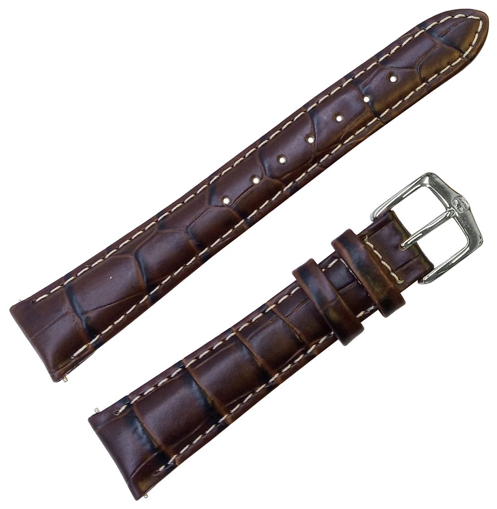 Originální Wenger řemínek v šířce 17 mm z kůže v hnědém provedení se vzorem imitace krokodýlí kůže.