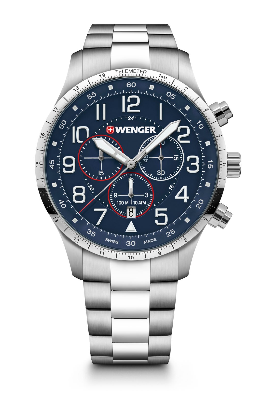 Hodinky budou držet na Vašem zápěstí díky ocelovému tahu, který je vyroben z ušlechtilé oceli. Snadnou výměnu řemínků zajišťuje systém uchycení pomocí rychlostěžejek. Za zmínku také stojí signovaná korunka se Švýcarským křížem umístěna klasicky na pravé straně pouzdra. Jak již jsme u Wengeru zvyklí, i zde se myslí na praktickou stránku věci, a hodinky tedy mají vodotěsnost 10 ATM. Díky této vodotěsnosti se s hodinkami nemusíte bát jít do bazénu či moře.