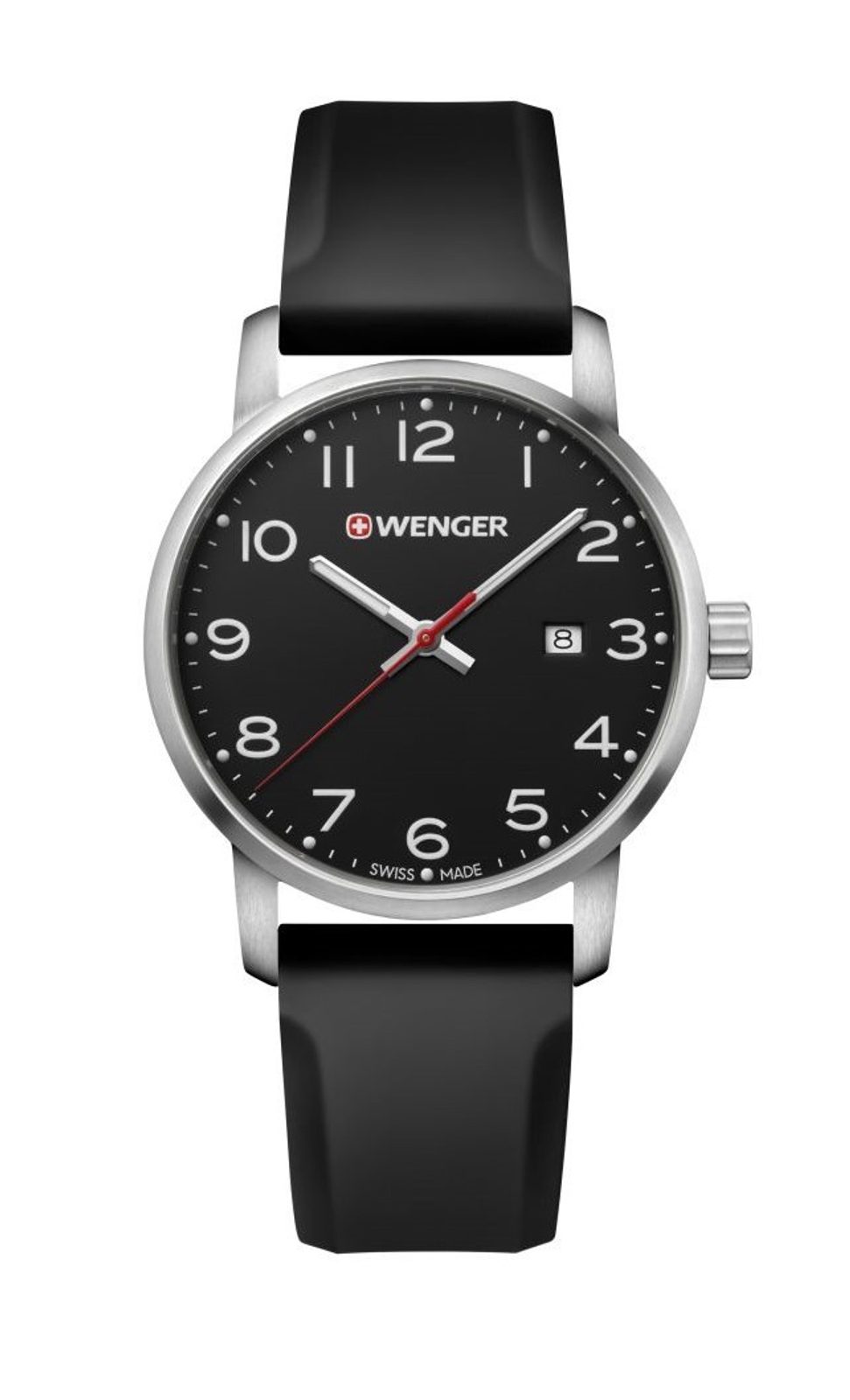 Pánské hodinky Wenger Avenue 01.1641.101 jsou novinkou roku 2017. Řada hodinek Avenue je určena pro sportovní výkony, samozřejmostí je také městský design hodinek, díky kterému lze hodinky nosit denně. Ciferník hodinek je chráněn minerálním sklíčkem se safírovým povlakem. Ciferník je navíc obohacen o ukazatel data. Perfektní čitelnost i v noci pak oceníte díky luminiscenčním ručičkám a bodům. Vodotěsnost tohoto modelu je 10 ATM.