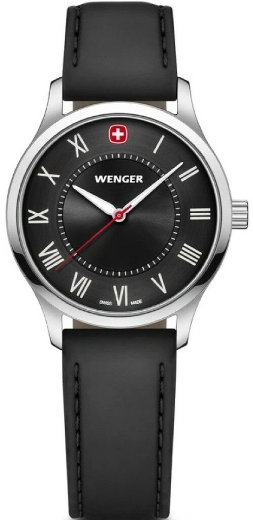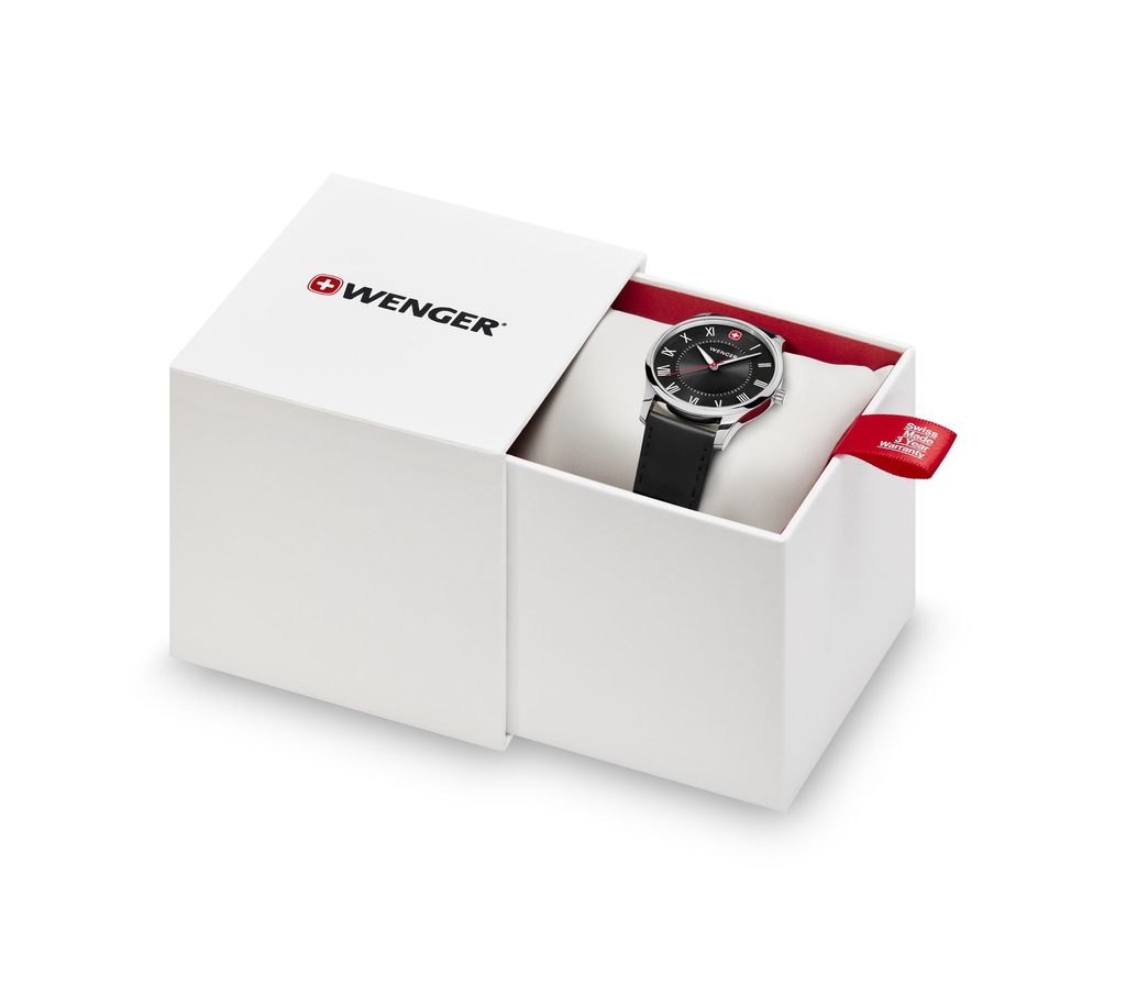 Tento dámský model nabídne především vysoce elegantní vzhled, který bude zdárně sekundovat i společenskému oblečení, minerální sklíčko se safírovou úpravou a voděodolnost 5 ATM, s níž hodinky zvládnou i mytí rukou. Přehlednému ciferníku dominuje červený švýcarský kříž na pozici 12 hodiny, který Wenger používal u svých modelů hodinek z ranné produkce. Ne úplně všedním řešením je vyvedení indexů v římských číslicích.