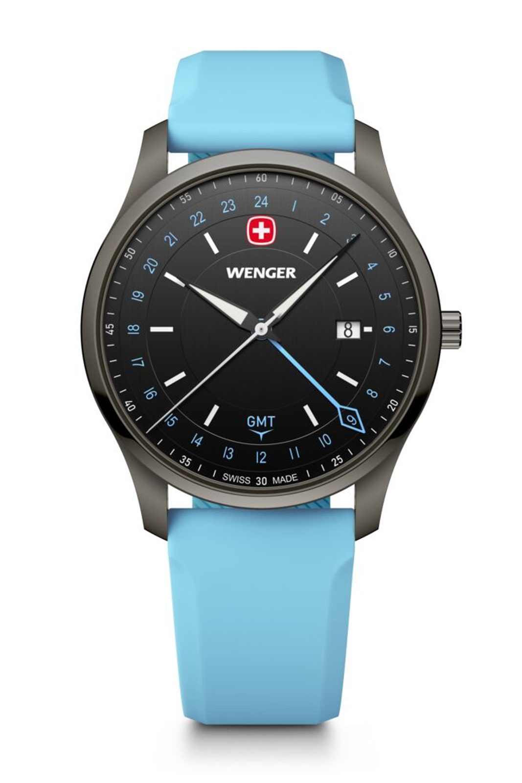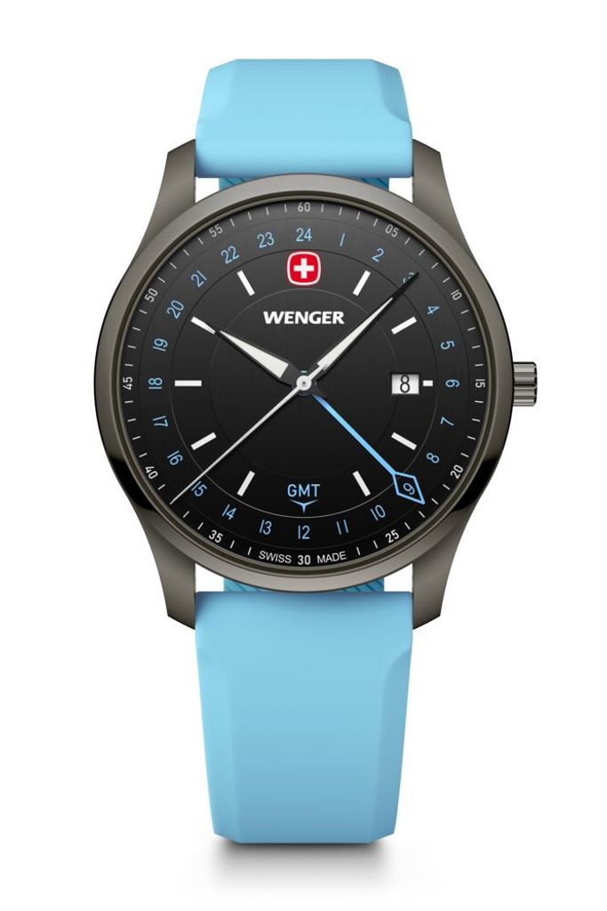 Zcela nová modelová řada City GMT, která v sobě snoubí nadčasový design s moderní funkčností. Model s označením Wenger City GMT 01.1442.103 nese označení Swiss Made, hodinky disponují funkcí GMT, díky níž můžete snadno sledovat více časových pásem, ať už vás cesty zavedou kamkoli. K tomuto účelu slouží nejdelší barevná ručka s kosočtvercovým zakončením.