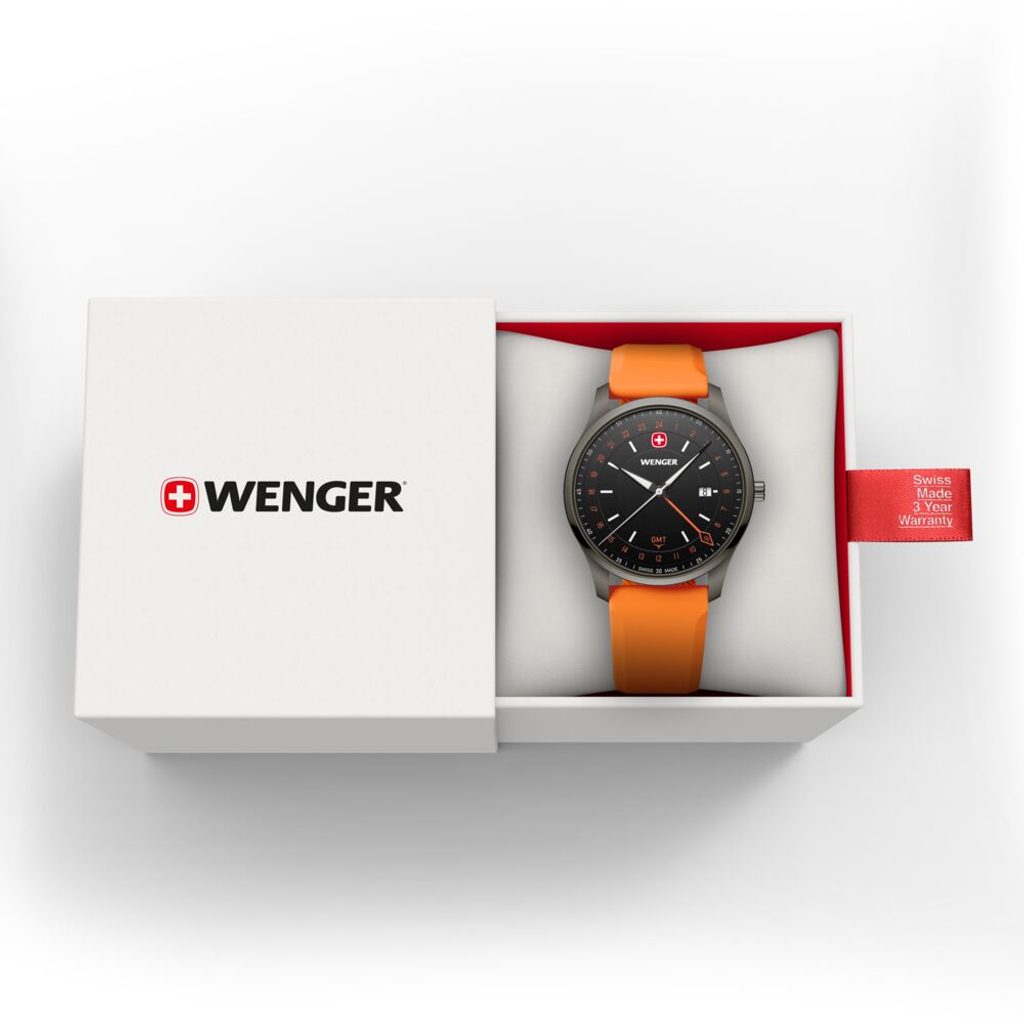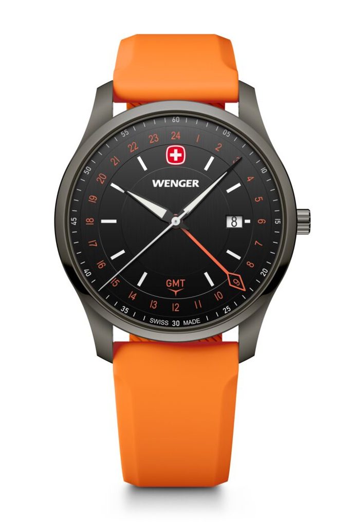 Zcela nová modelová řada City GMT, která v sobě snoubí nadčasový design s moderní funkčností. Model s označením Wenger City GMT 01.1442.104 nese označení Swiss Made, hodinky disponují funkcí GMT, díky níž můžete snadno sledovat více časových pásem, ať už vás cesty zavedou kamkoli. K tomuto účelu slouží nejdelší barevná ručka s kosočtvercovým zakončením.