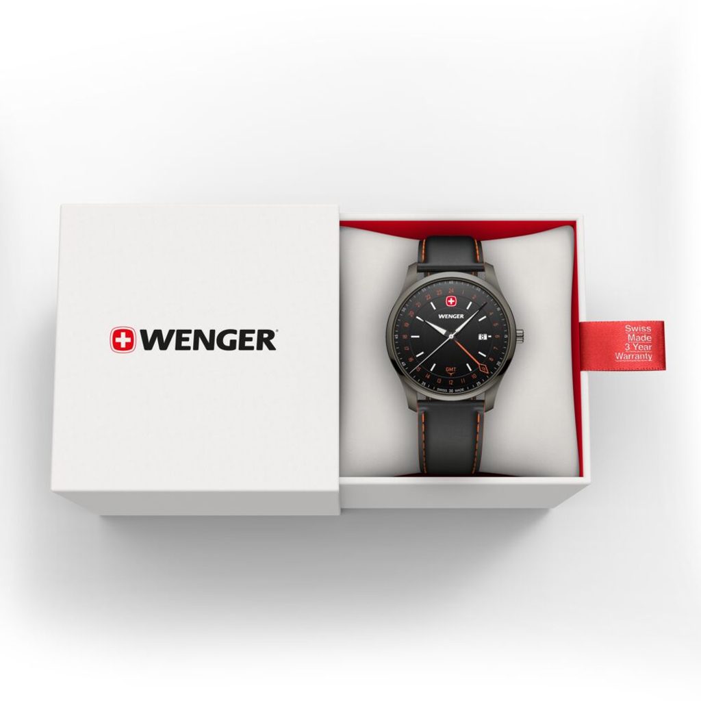 Zcela nová modelová řada City GMT, která v sobě snoubí nadčasový design s moderní funkčností. Model s označením Wenger City GMT 01.1442.106 nese označení Swiss Made, hodinky disponují funkcí GMT, díky níž můžete snadno sledovat více časových pásem, ať už vás cesty zavedou kamkoli. K tomuto účelu slouží nejdelší barevná ručka s kosočtvercovým zakončením.