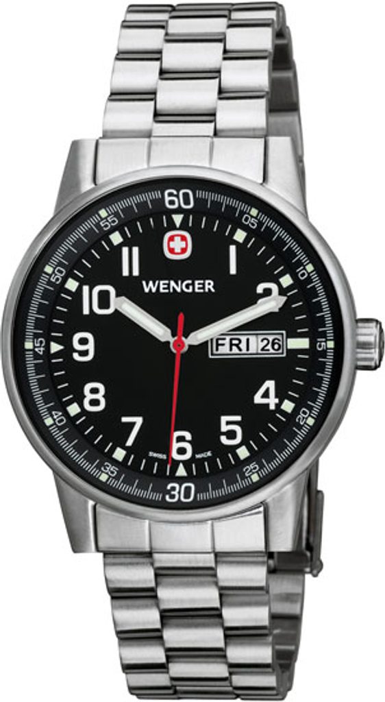 Hodinky Wenger Commando Day Date 70163.XL patří mezi velmi oblíbené modely. Své majitele si získávají špičkovým spojením jednoduchého designu a funkčnosti. Tyto společenské hodinky mají velice přehledný ciferník, který ukazuje čas, datum i den v týdnu a chrání ho minerální sklíčko se safírovou úpravou. Bytelné ocelové pouzdro v sobě ukrývá odolný quartzový strojek Ronda a díky průměru 40 mm skvěle padne každému pánskému zápěstí.