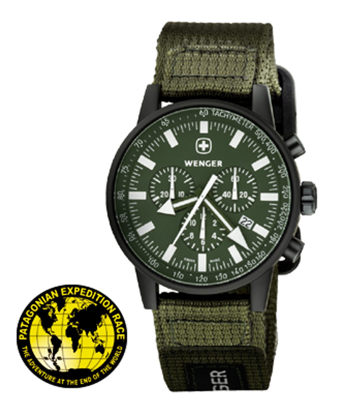 Model Commando WPER 70897 disponuje ocelovým pouzdrem s PVD úpravou, minerálním sklem se safírovou úpravou a velkým zeleným ciferníkem s chronografem a tachymetrem. Můžete si tak změřit například uběhnutý čas, ale i rychlost. Textilní pásek v zeleném provedení s logem Wenger dokonale obepíná ruku. Zkratka WPER znamená Patagonian Expedition Race, což je jeden z nejkrásnějších a nejtvrdších závodů planety probíhající na jihu Jižní Ameriky v oblasti Patagonie - jedné z nejodlehlejších a nejméně civilizovaných částí světa. Soutěžící musí během devíti dnů absolvovat několik různých disciplín v extrémních podmínkách. Právě tento závod se rozhodla sponzorovat firma Wenger. Jeho logo se nachází na dýnku hodinek.