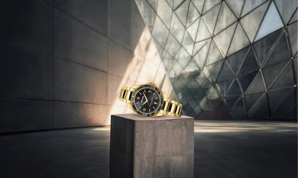 Tyto Švýcarské bateriové hodinky zdobí propracované aplikované indexy a luminiscenční plochy, které zajišťují optimální čitelnost za zhoršených světelných podmínek a v noci. Hodinky z modelové řady Executive jsou vyrobené z ušlechtilé oceli se zlatou PVD úpravou a leštěnými články tahu ve stylu "oyster" s překlápěcí sponou, která ještě navíc umožnuje drobnou mikro regulací. Samotný tah je k hodinkám upevněn pomocí systému rychlostěžejek, díky kterým zvládnete výměnu v domácích podmínkách bez použití jakéhokoliv nástroje.
