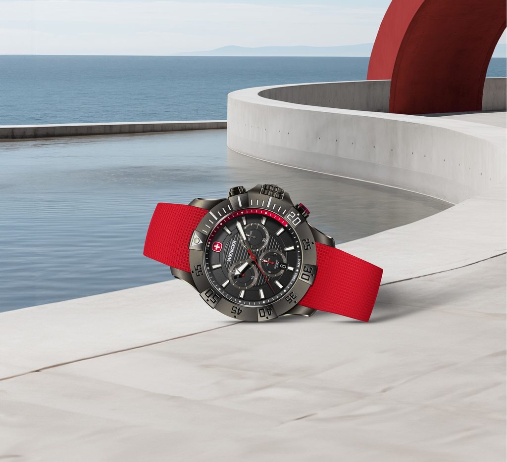 V průběhu léta 2024 k nám jako svěží vítr vtrhla již 4. generace modelů Wenger Sea Force. Model Wenger Sea Force Chrono 01.0643.128 přichází s drobným redesignem číselníku, jako je například umístění znaku Wengeru (Švýcarského kříže) zpět na 12 pozici a barevné zvýraznění na vnitřní lunetě pro prvních dvacet minut. To vše při zachování sportovního vzhledu a maximální spolehlivosti. Od užívání si mořských vln například na surfu, nebo naopak v kanceláři, tyto hodinky vždy zapůsobí.