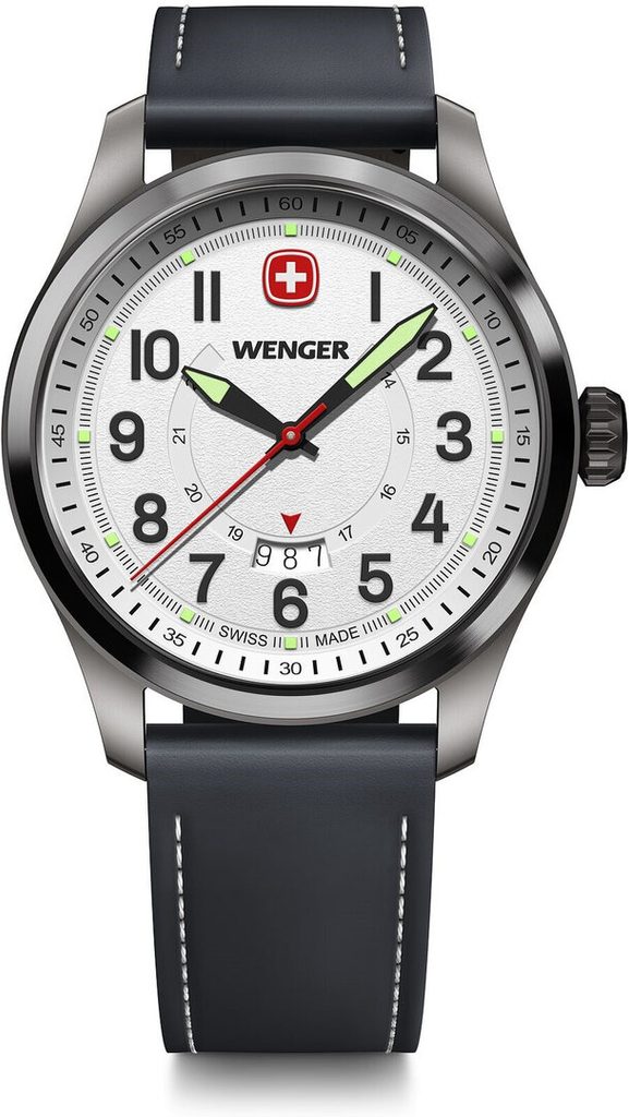Hodinky budou držet na Vašem zápěstí díky koženému řemínku. Snadnou výměnu řemínků zajišťuje systém uchycení pomocí rychlostěžejek. Za zmínku také stojí vygravírovaná signovaná korunka se Švýcarským křížem umístěna klasicky na pravé straně pouzdra. Jak již jsme u Wengeru zvyklí, i zde se myslí na praktickou stránku věci, a hodinky tedy mají vodotěsnost 10 ATM. Díky této vodotěsnosti se s hodinkami nemusíte jít bát zaplavat.